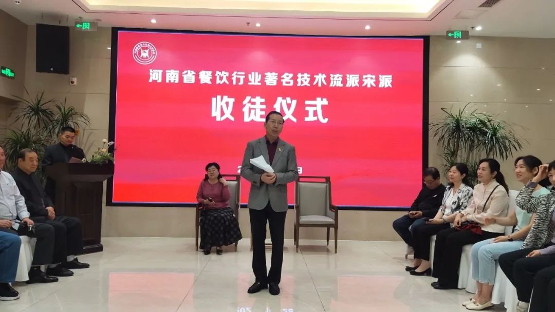 拜师仪式由宋派弟子、河南省餐饮与住宿行业协会服务委员会副主席李迎钢主持,河南省餐饮与住宿行业协会驻会副会长张毅兵,元老级中国烹饪大师、河南餐饮业著名技术流派郑州陈派宗师陈进长,郑州旅游职业学院副院长张建军,资深级中国烹饪大师、郑州市饮食有限责任公司副总经理马世伟,郑州市嵩山饭店党委副书记宋志强,注册中国烹饪大师、河南省龙祥宾馆总经理张仁平,河南省餐饮与住宿行业协会副秘书长汪中原,河南省金河宾馆原副总经理段玉宝,以及宋派弟子、学生、服务业特邀嘉宾董静、孔英丽、尚坤英、王起、崔茜、江波、李晓东、肖靖、李迎钢、黄宁、李丹华、许春峰、李侠、陈初、于婷婷、李爱珍、赵良、张洁、任鹏、白晓州等人出席拜师仪式。