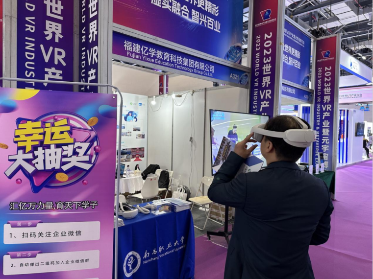 本次VR博览会,亿学集团多维度展示了虚拟仿真和i元宇宙技术的持续创新升级,带来更加丰富、更加强大的解决方案,与莅临参展的诸多友商、学校、政企单位做了深入的沟通交流。