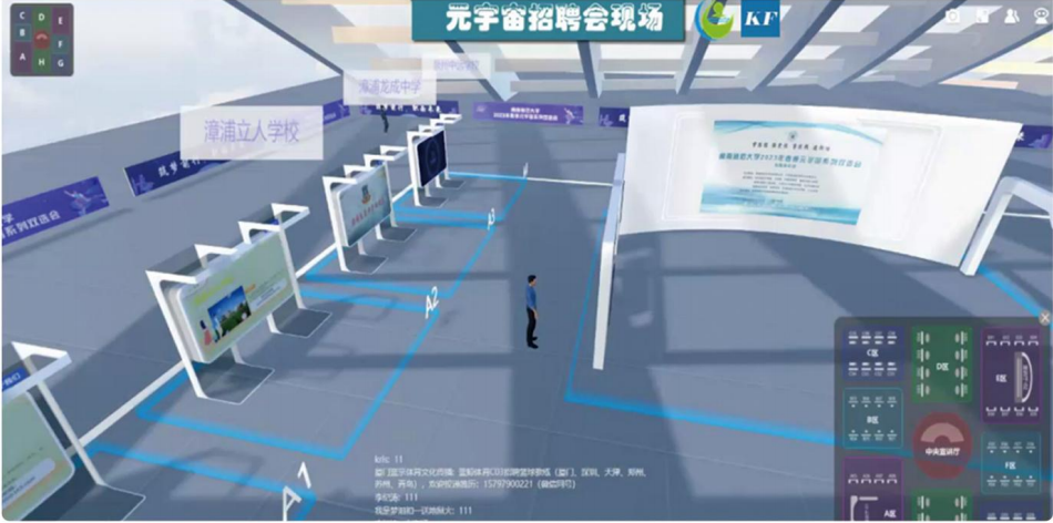 在亿界未来元宇宙招聘会应用上,校企可以搭建展台、宣讲展厅、面试间、校企合作签约室等应用场景,企业HR和学生可以个性化选择虚拟数字人形象,打开共享音视频、作品,全方位自我展示,一对一完成云上求职面试。