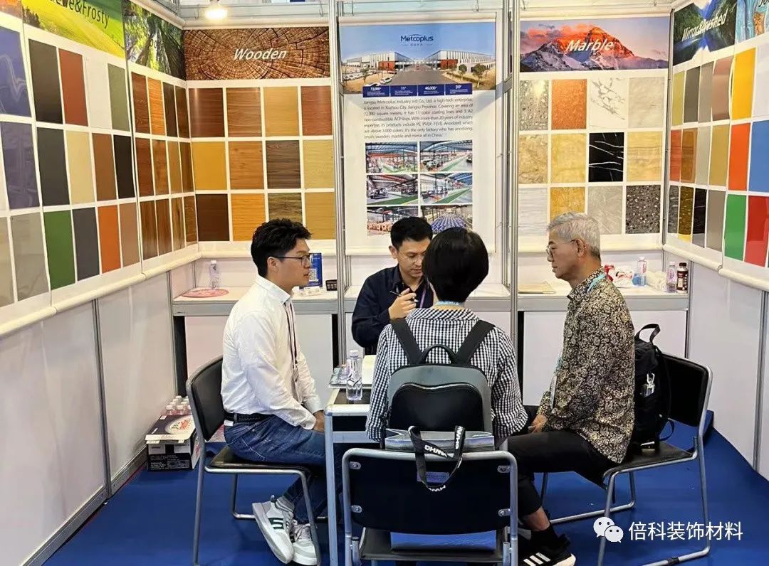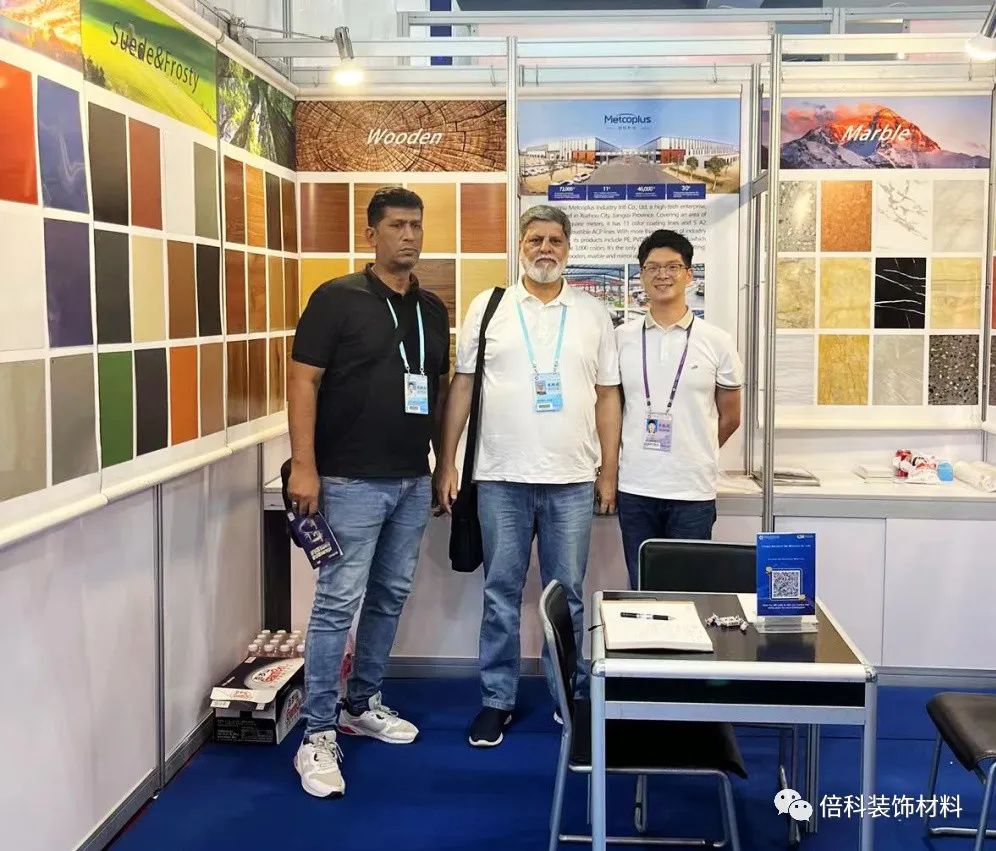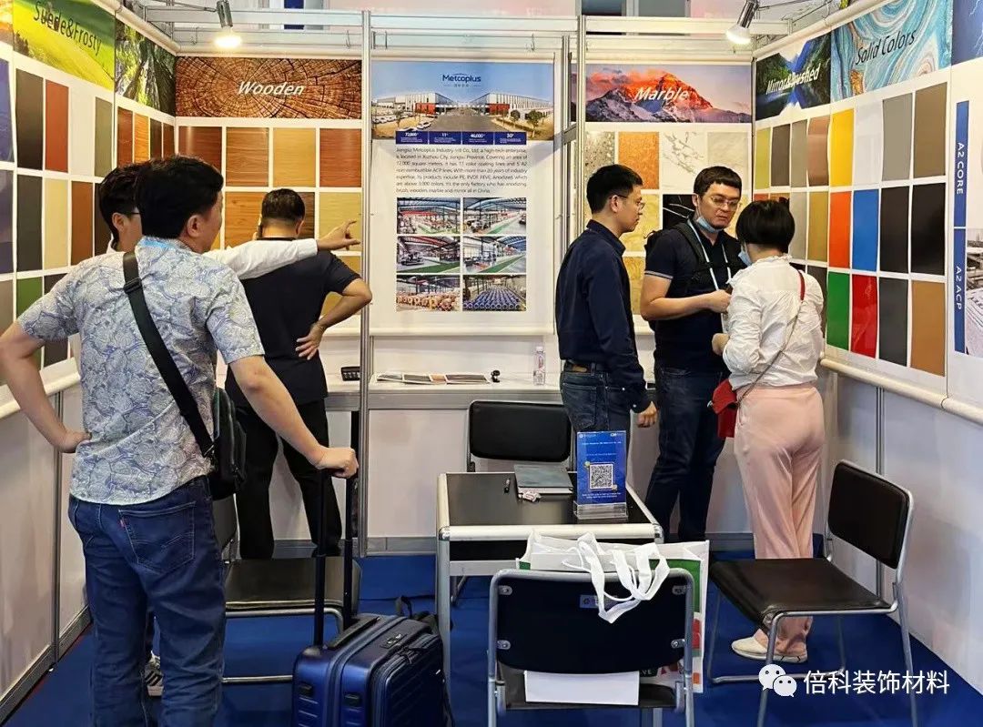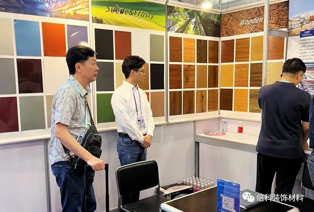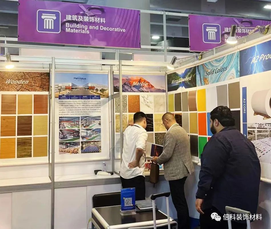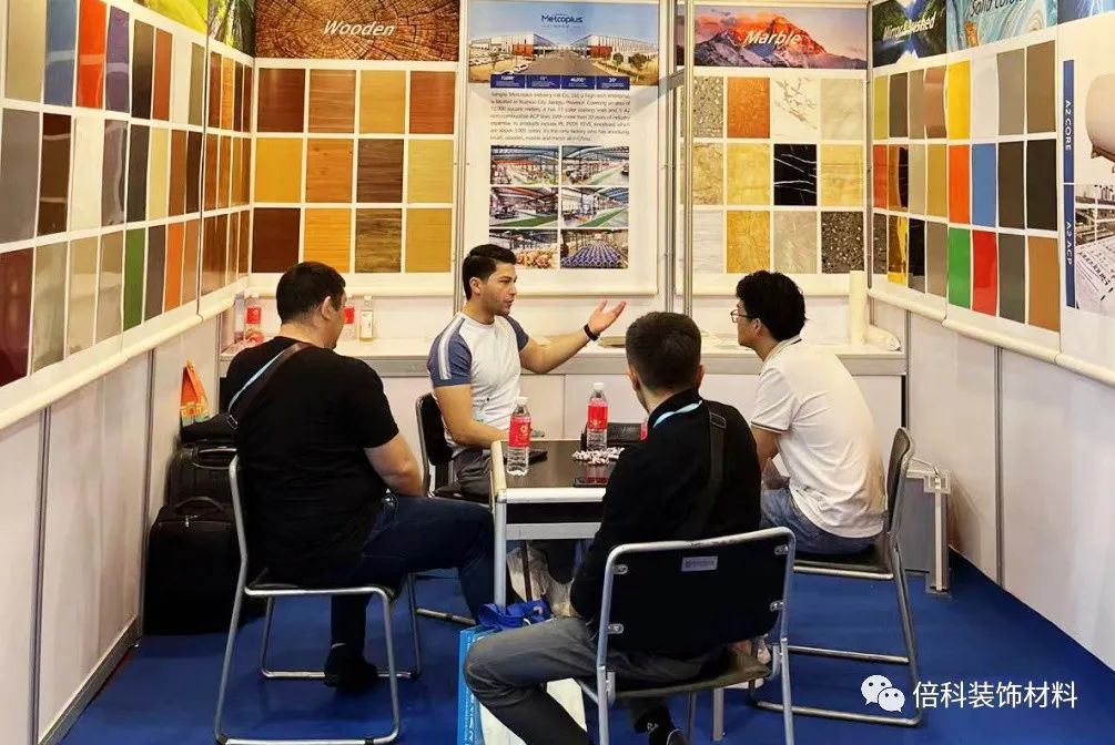 江苏倍科亮相此次广交会,发布最新产品,从木纹石纹、拉丝镜面,到阳极氧化、变色龙等,品类繁多。并在展会期间与一位国外采购商达成了一笔订单。目前倍科已实现技术及产品的全面升级,可满足不同用户的需求。