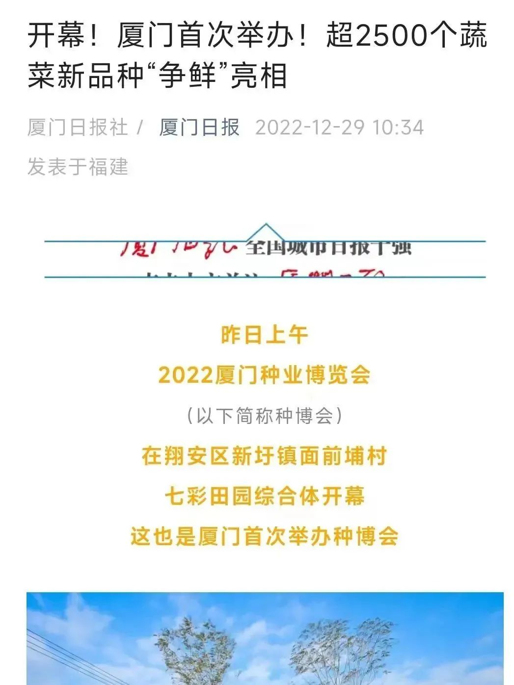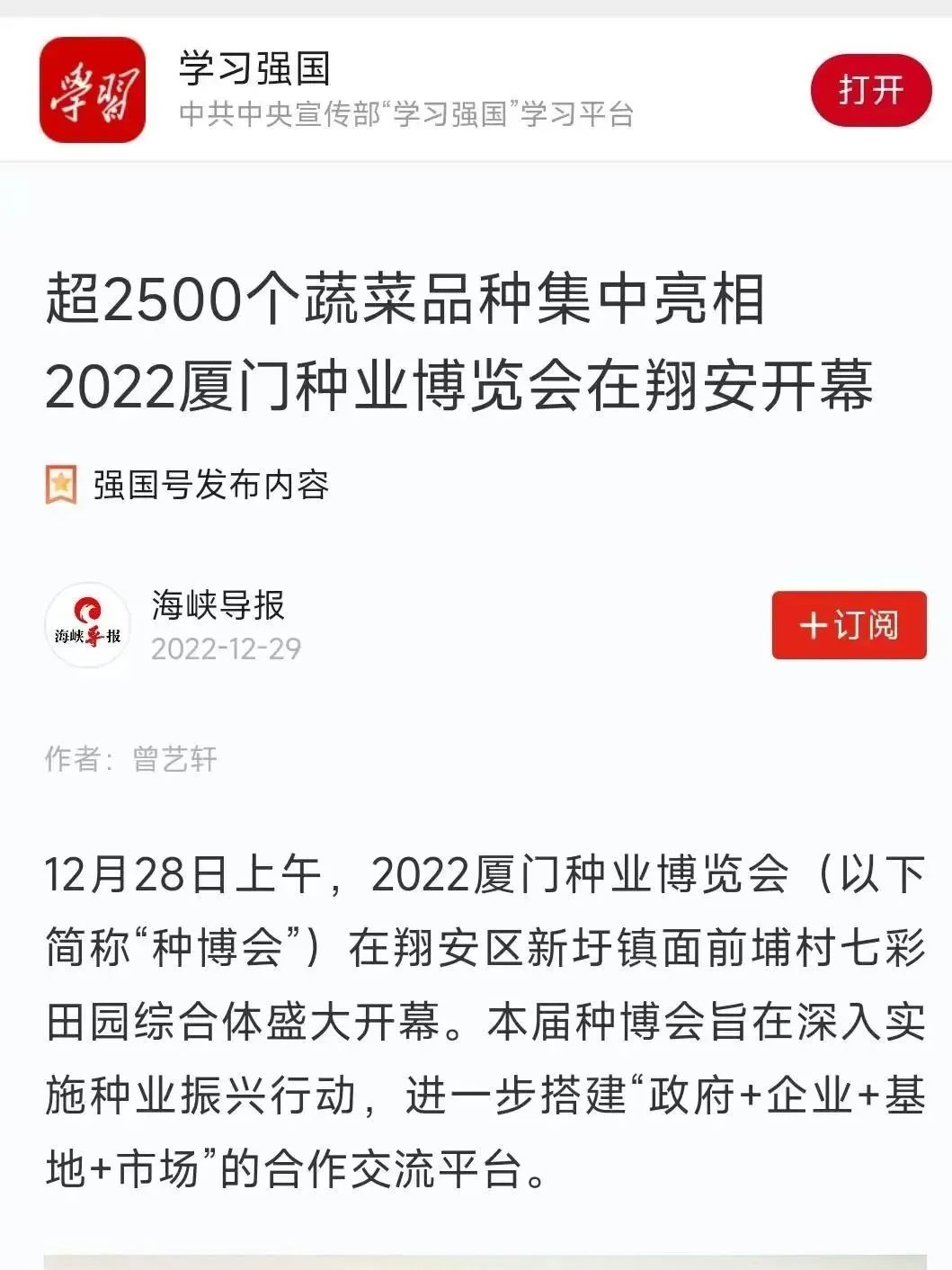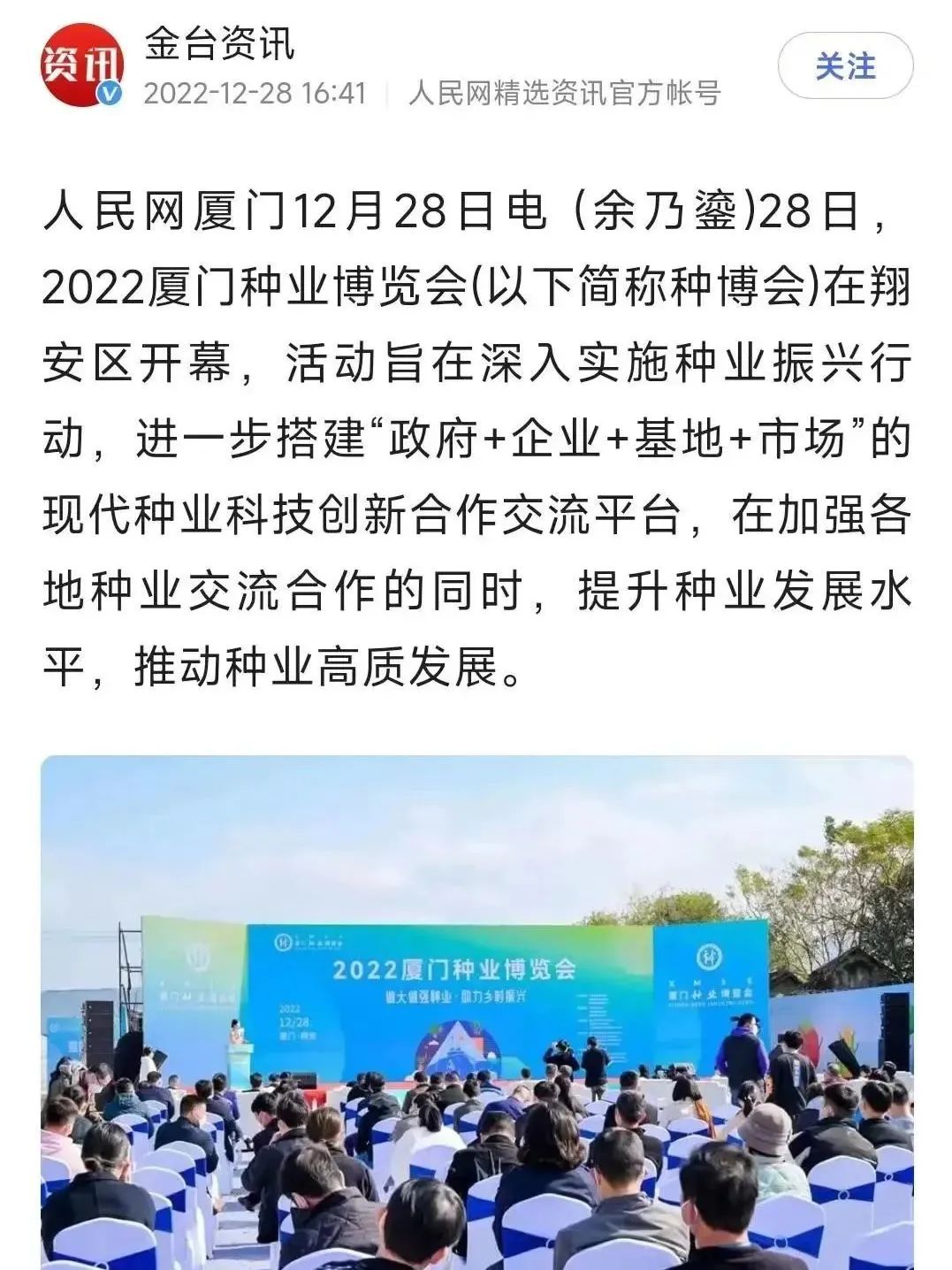 2022年12月28日,以“做大做强种业 助力乡村振兴”为主题的首届厦门种博会在翔安区新圩镇面前埔村盛大开幕!