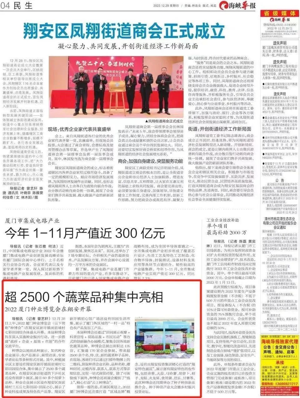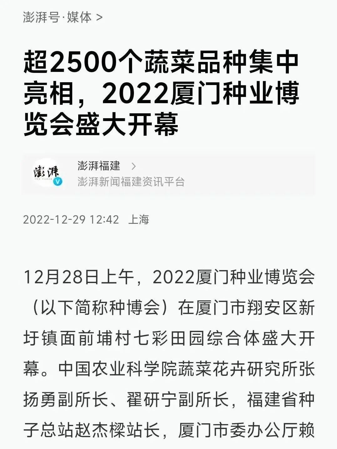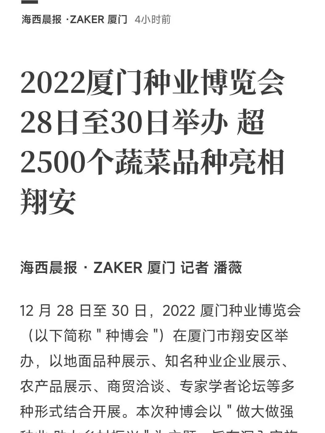 2022年12月28日,以“做大做强种业 助力乡村振兴”为主题的首届厦门种博会在翔安区新圩镇面前埔村盛大开幕!