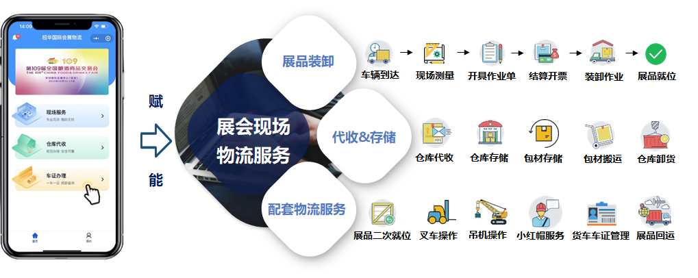 本届糖酒会首次全面采用线上下单模式,包括现场操作、仓库代收、车证办理,展商均可提前在“招华国际会展物流”小程序上进行线上预约物流服务。后台收到预约需求后,工作人员将在线上处理并制定服务计划。展商到达现场后,可快速调取订单,完成下单开始作业。同时,展商可在线上完成结算、开票以及实时追踪订单状态。展后,招华国际会展物流也将进行数据可视化,并把相关物流信息数据分析反馈给主办方,帮助主办方更好的了解展会物流情况。