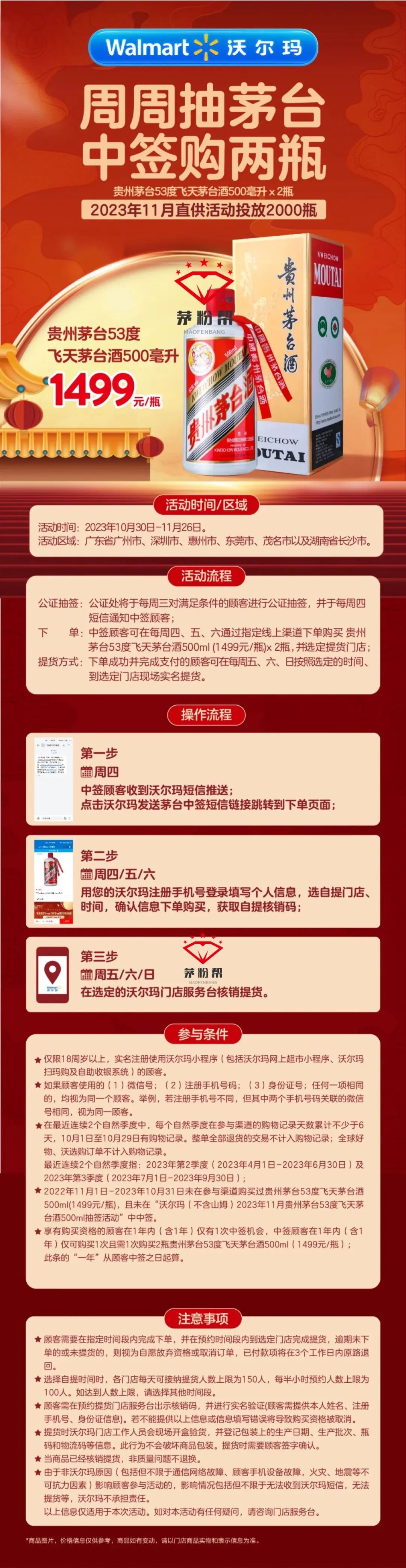 沃尔玛11月1499贵州飞天茅台酒预约抽签活动开启了!