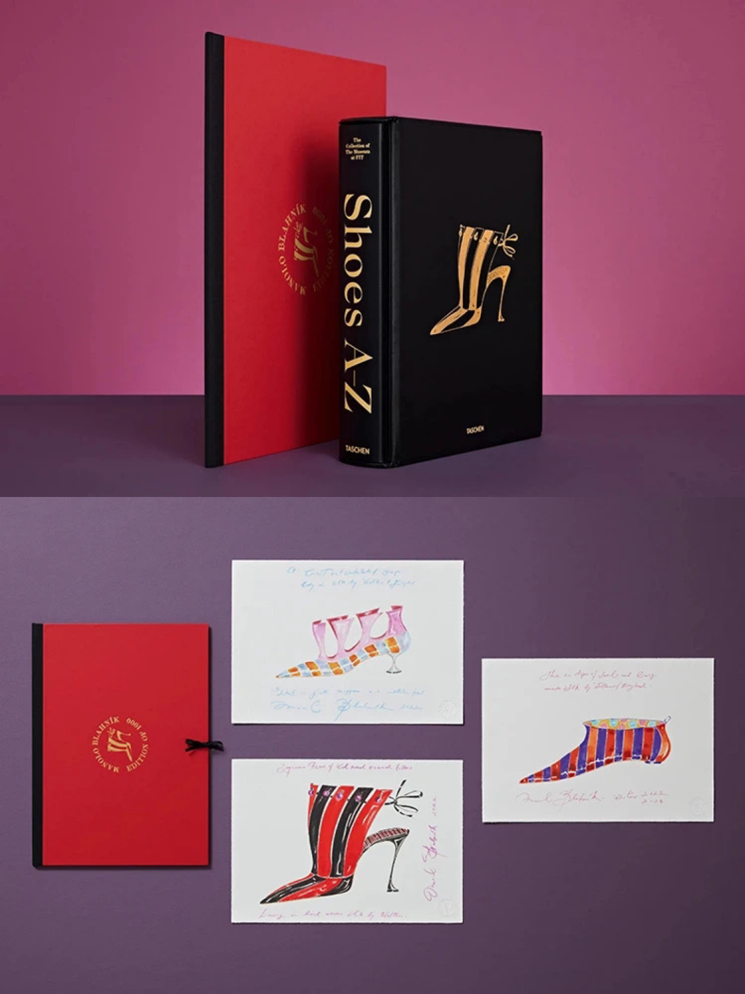 欢迎走进世界上最令人垂涎的衣橱之一!TASCHEN最新出版的《Shoes A-Z. The Collection of The Museum at FIT. Manolo Blahník Edition》专著以这种方式来庆祝充满力量、感性、俏皮和实用的鞋履设计。这套全新专著收录了数百个创意十足的设计,涵盖诸多文献资料和鞋履素描,是对TASCHEN早前出版的时装专著《Fashion Designers A–Z》的精彩延续,从中展示了令人向往的奢华品牌,如Christian Louboutin、Manolo Blahník及Roger Vivier等。此收藏版专著全球限量发售1,000套,此专著于意大利印刷制作,每套均有独立编号,并含有鞋履设计大师Manolo Blahník专为此版本精心创作的三幅彩色素描画作的艺术印刷品,并细致打上了品牌盖章。这些精美的彩色素描以6/8色印刷于质感超群的意大利Fabriano纯棉纸上,收纳于饰以金箔烫印及丝带装饰的华美文件夹内。