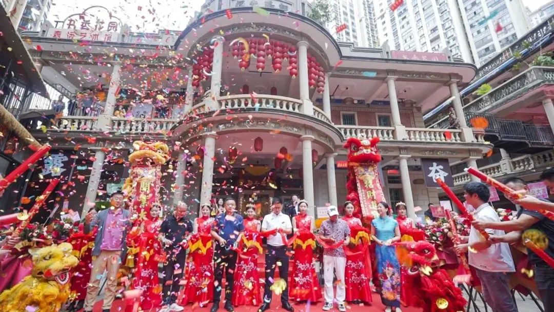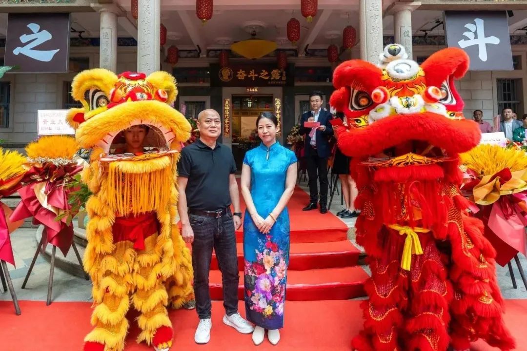 融辉供应链副总裁兼市场营运中心负责人刘峙和融辉供应链福建省总经秀蘭挥笔画狮点睛,双狮四目点亮更耀眼有神,灵妙动人,身形矫若游龙,驾雾腾云,飞身“采青”。开业大吉,喜气临门,生意兴隆,财源滚滚。