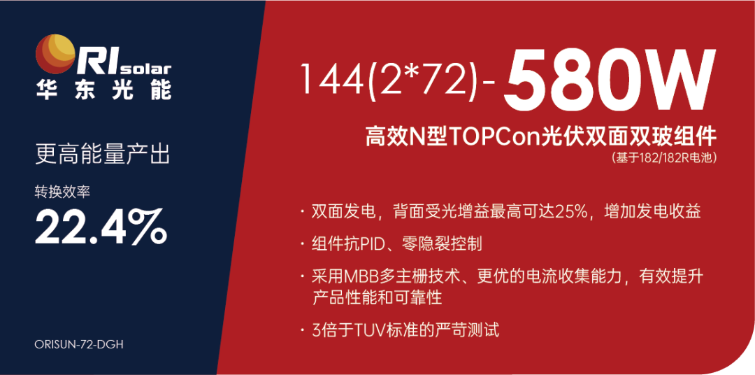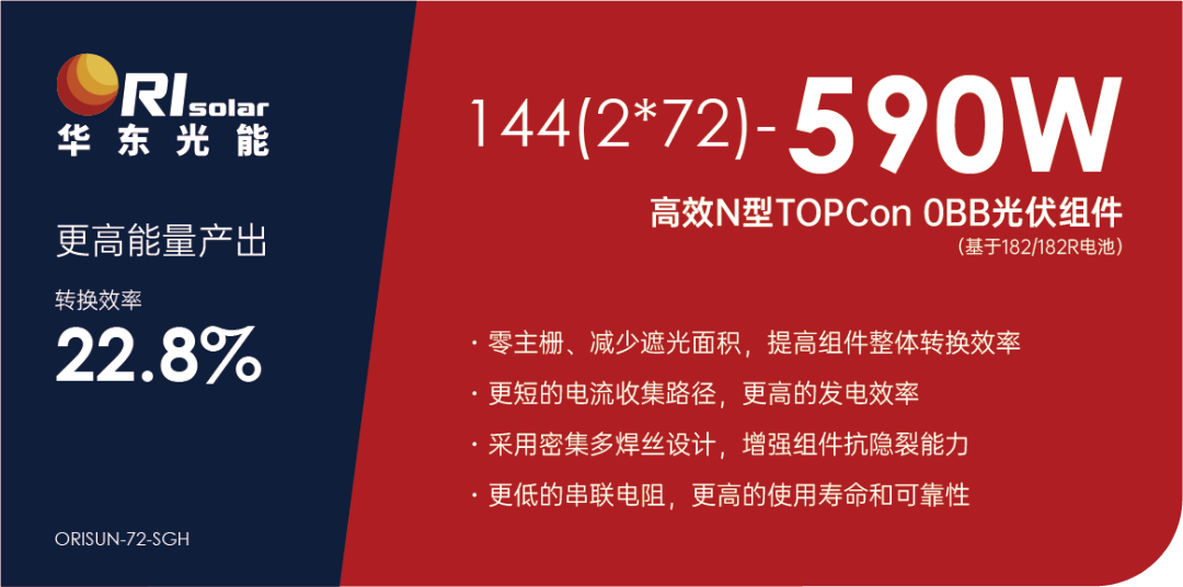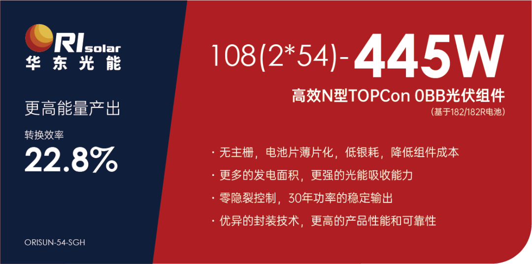 此次华东光能亮相的组件产品,充分满足分布式和大型地面电站等不同细分市场需求,有效助力行业降本增效,ORISUN-72-DGH、ORISUN-72-SGH(0BB)、ORISUN-54-SGH(0BB)、三款组件便是分布式项目的首选。其中ORISUN-54-SGH(0BB)组件以其独特的美观性、轻质化和设计尺寸适用于海外的住宅市场。