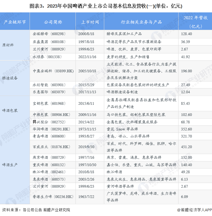 行业主要上市公司:华润啤酒(00291.HK);青岛啤酒(600600);百威亚太(01876.HK);重庆啤酒(600132);燕京啤酒(000729)等。