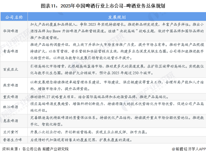 根据中国酒业协会发布的《中国酒业“十四五”发展指导意见》规划,预计到2025年,我国规模以上啤酒企业总产量将达到3800万千升,较“十三五”末上升约11.4%,年均增长2.3%。同时,总收入和总利润将分别较“十三五”末上升约63.4%和124%,年均增长约达12.7%和24.8%。经历过三年疫情的考验,各啤酒公司也对公司未来发展提出了新规划,多家公司目前集中在高端转型战略以及数字化发展战略上。
