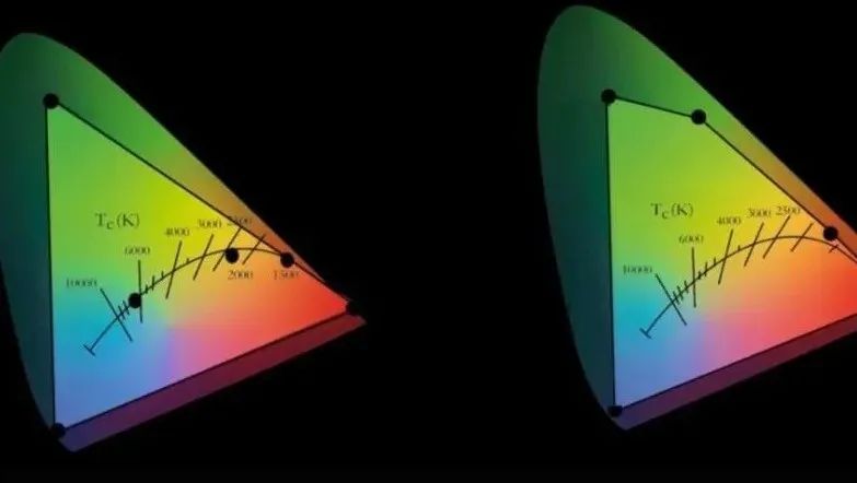 原因就在于W白光灯珠对于拓展色域并没有实质性的帮助,一些中间色、饱和色,尤其是绿色系色彩,是混不出来的。