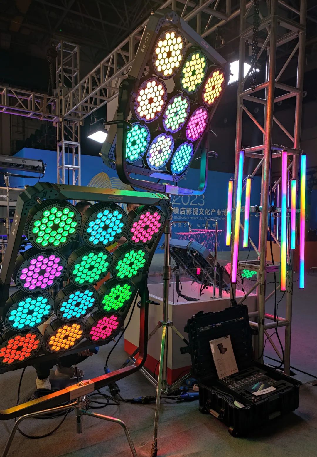 本次横店影视节上,Combi系列2头、4头、9头、12头多个型号展出,还特别设置了4头防水展示区,意味着即使遇到小到中雨,依然不耽误拍摄,可以正常使用我们的灯具。