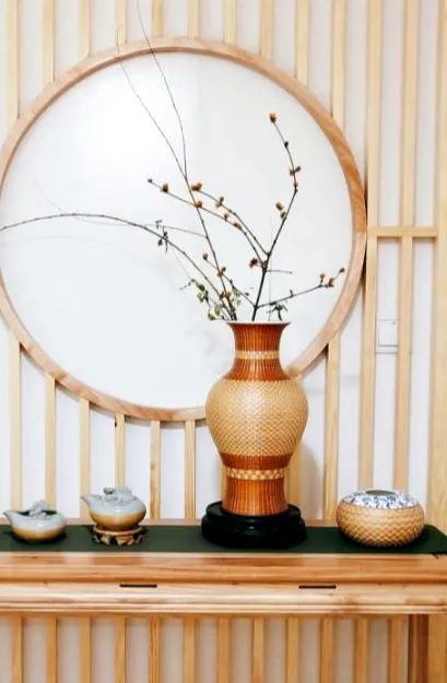 每一件瓷胎竹编工艺品都是经过选竹、刮青、破节、晾晒、选料、烤色、锯节、启薄、刮片、定色、冲头、抽匀、染色、编织、成品这十多道纯手工工序。