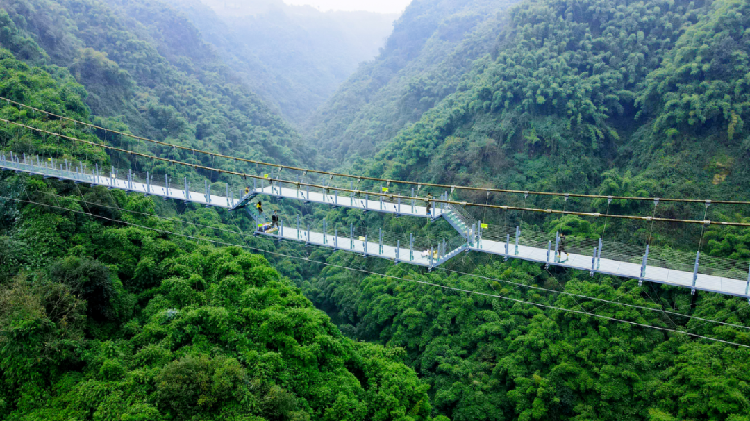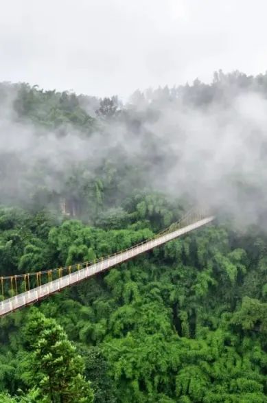 川西竹海景区建成全球首座双层高空全景走廊——仙侣揽月桥,与仙侣携云桥、仙侣牧云桥形成国内独有“三桥凌云揽竹海”的独特壮丽景观,成功创建为国家“AAA”级景区,被评为四川省森林康养度假区试点建设单位。