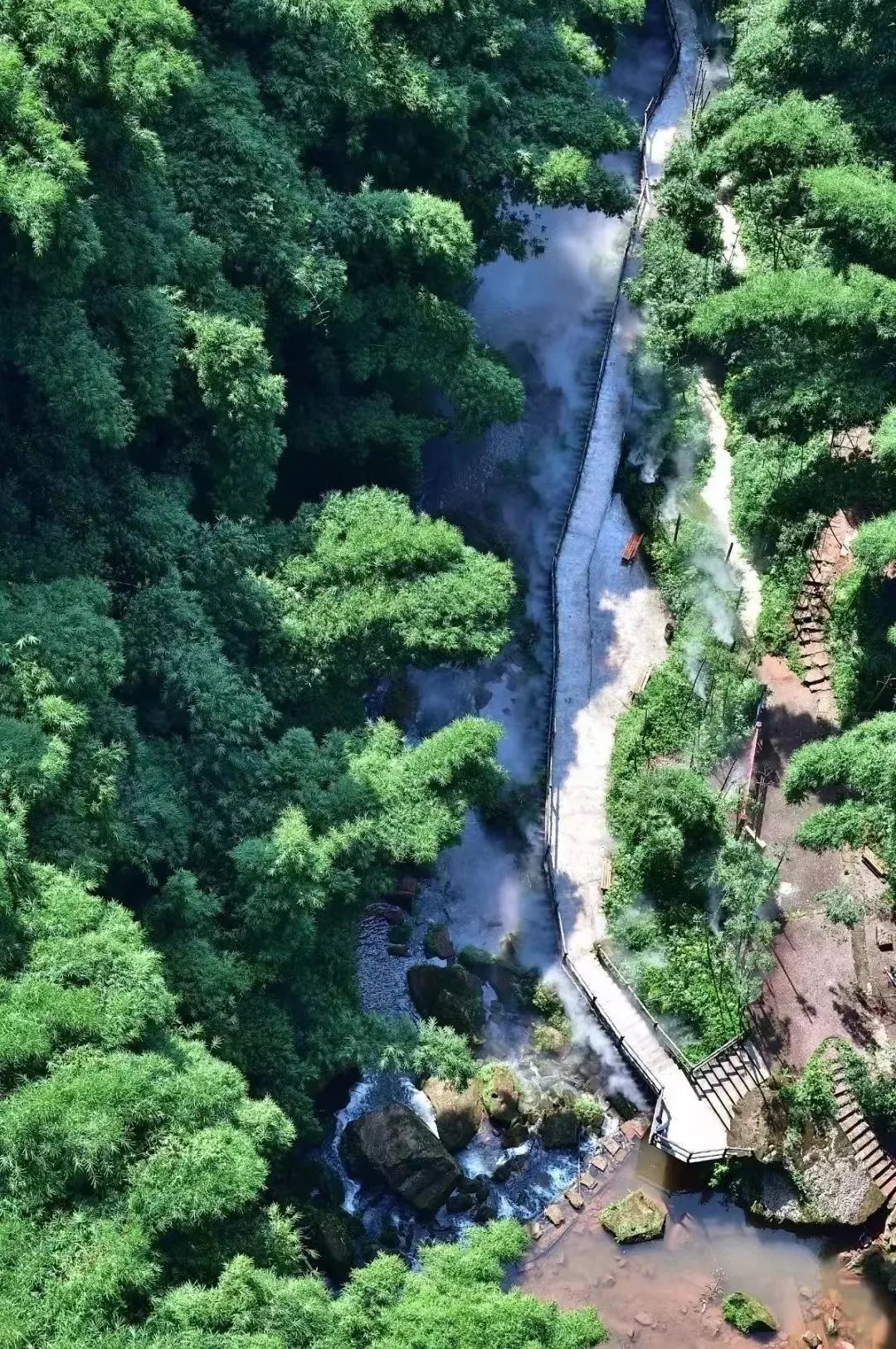 景区内竹林茂盛,山川俊朗,怪石突兀,竹海面积达十万余亩,空气中每立方厘米负氧离子含量最高可达200余万个,是成都市区的数百倍,被誉为“天然氧吧”。