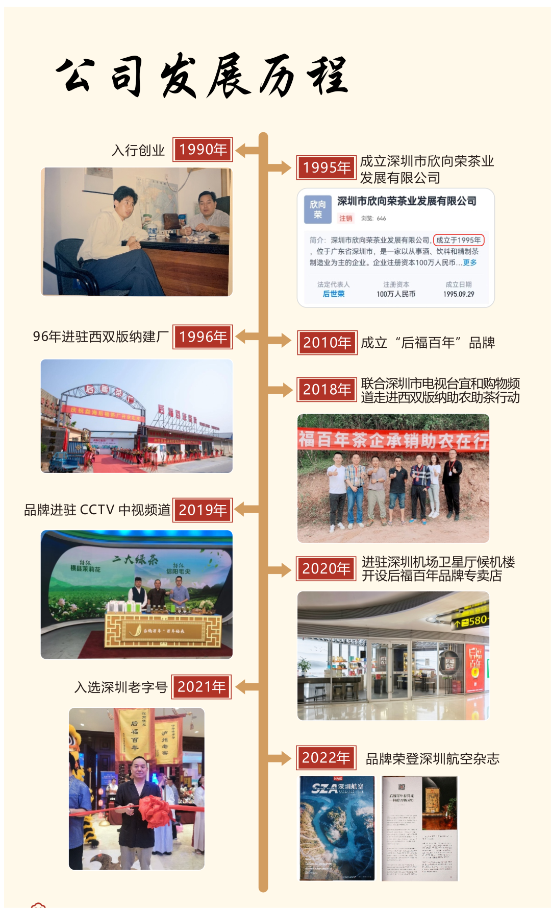 深圳后福百年茶叶集团有限公司,属深圳老字号品牌,1990开始从事茶行业发展,公司致力于源头开发,从茶树到茶园、从生态建设到品质管理、从茶叶初制到产品精加工、从品牌连锁到茶文化发展,集团全产业链一条龙。