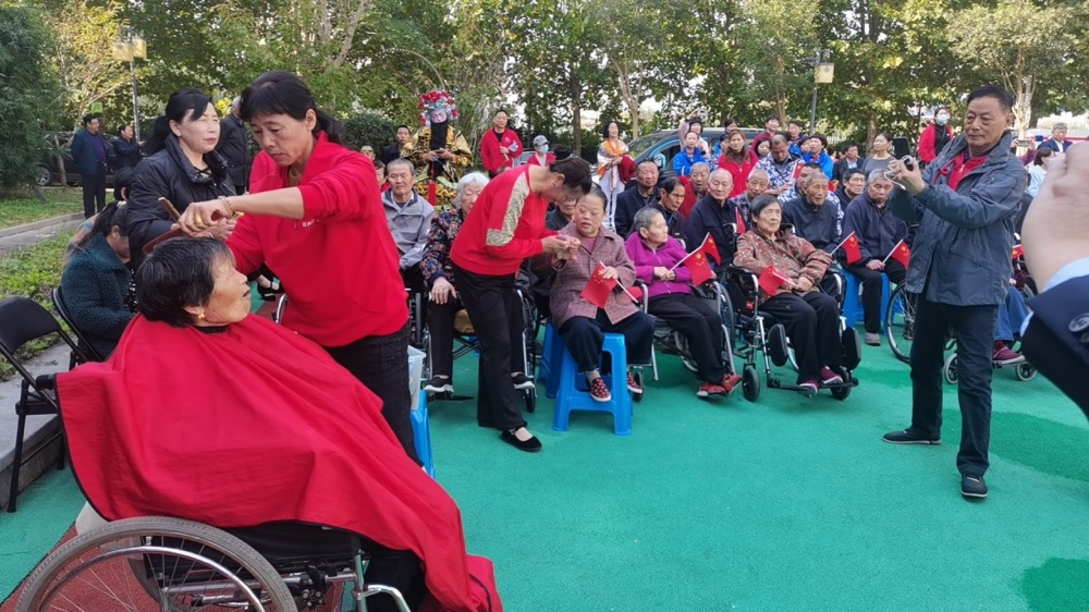 活动伊始,志愿者理发师阿姨们在院内巧妙搭建起温馨的理发区,为老人们提供免费剪发服务。白发得以精心修剪,不仅带来焕然一新的形象,更注入了对老年生活的深深关爱。一位老人激动地表达:“这让我感觉年轻了许多,真是太感谢了!”