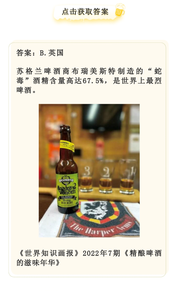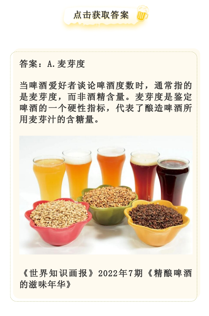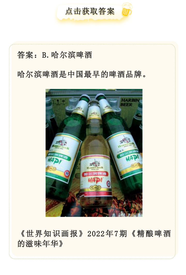 画报有奖问答(111)——中国最早的啤酒品牌是?啤酒度数指的是?