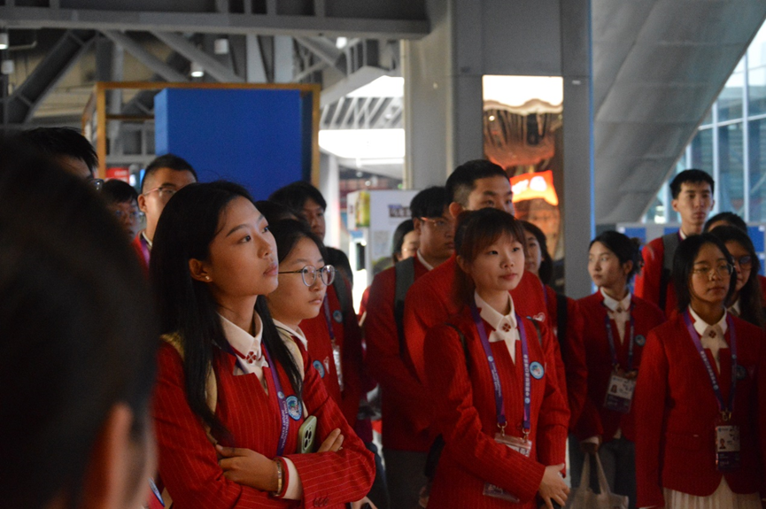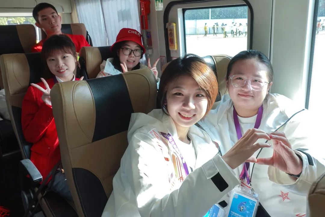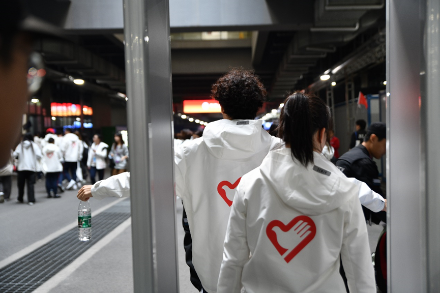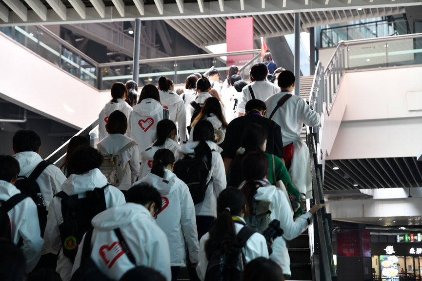 路途漫漫,“小叶子”们顺利抵达国家会展中心。大家满怀期待和激情,在各组负责人的带领下,经身份核实、物品安检等关卡,成功进入场馆。