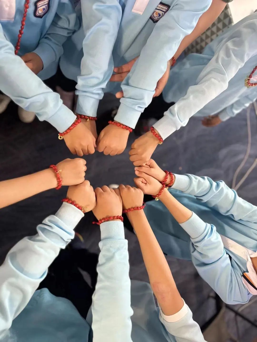 串成了手链,串出了爱。小可爱们制作好的手链亲手送给了妈妈们,温暖了自己,温暖了老母亲。
