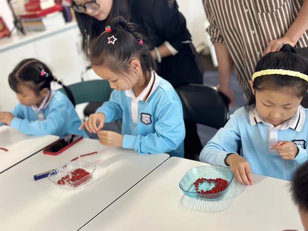 通过一系列的红豆小游戏,小可爱们直观的认识了红豆,动手又动脑,欢声笑语乐翻天,选择型专注力也得到了很好的训练。