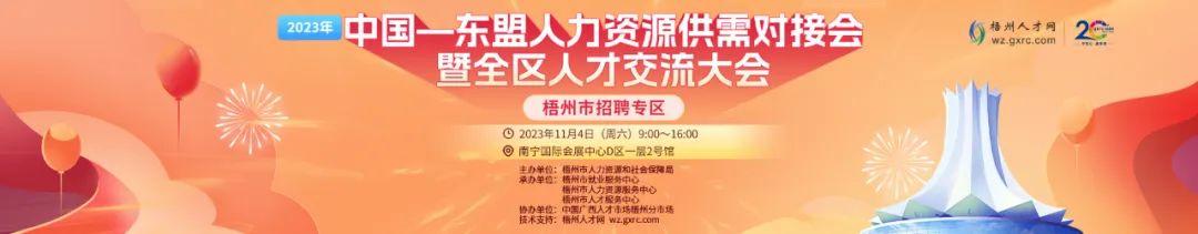 梧州招聘专区是交流会的组成部分,本次专区招聘活动由梧州市人力资源和社会保障局主办,是梧州市开展“稳主体促就业惠民生攻坚行动”的重要服务举措,旨在满足梧州市各领域用人单位引才引智的迫切需求,促进高校毕业生就业等优质人力资源有效配置,为梧州市实体经济发展的提供人才支撑。