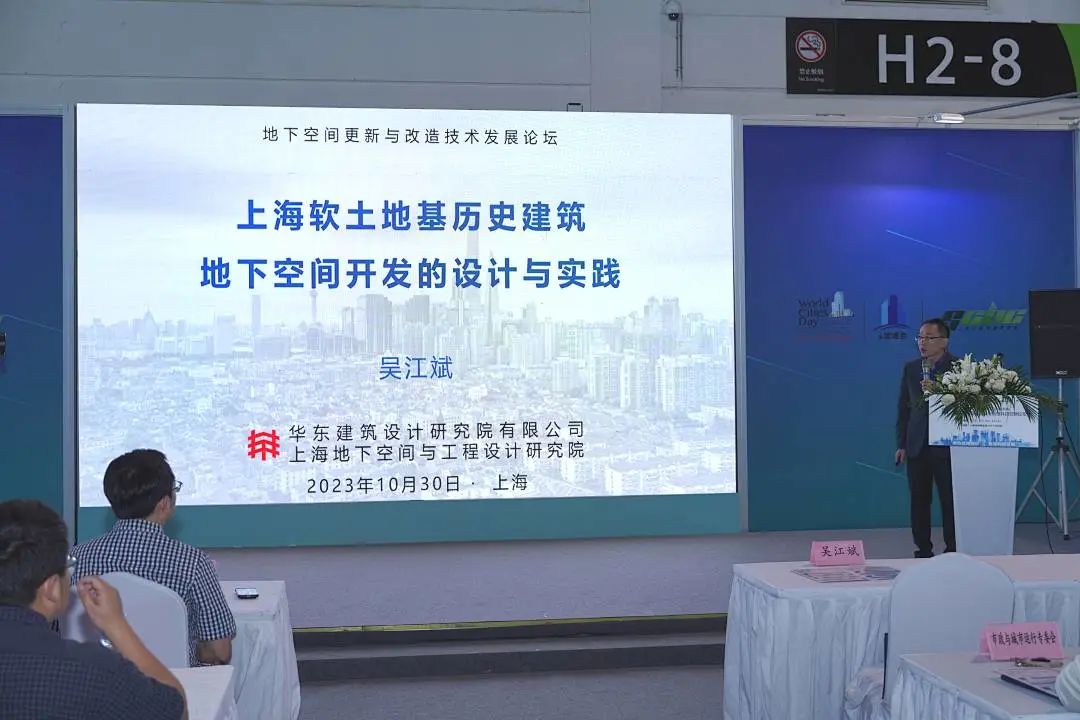 会上,华建集团上海地下空间与工程设计研究院总工程师吴江斌进行了题为《上海软土地基历史建筑地下空间开发的设计与实践》的学术交流;华建集团上海申元岩土工程有限公司地基所副所长苏志鹏分享了《既有建(构)筑物地基加固环境低影响施工关键技术研究与应用》的科技成果;杭州西子智能停车股份有限公司副总经理吕洪峰分享了《“因地制宜”——未来城市空间(地下)停车设备的引入及开发》的研究成果;上海勘察设计研究院(集团)股份有限公司城市更新院总工程师陆陈英进行了题为《基于城市更新的既有建筑地下工程技术创新与实践》的技术交流。
