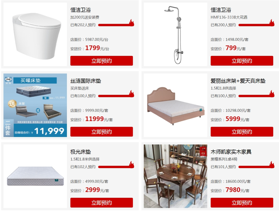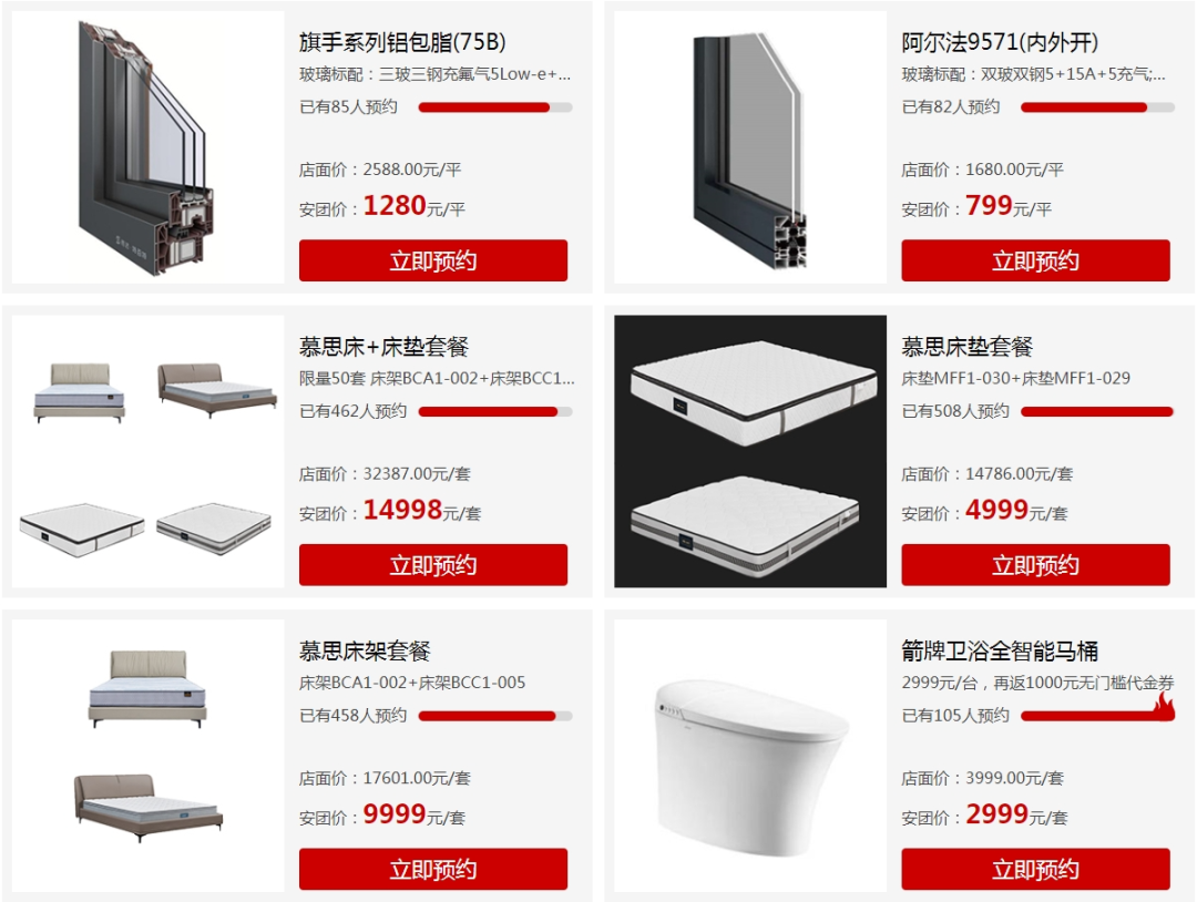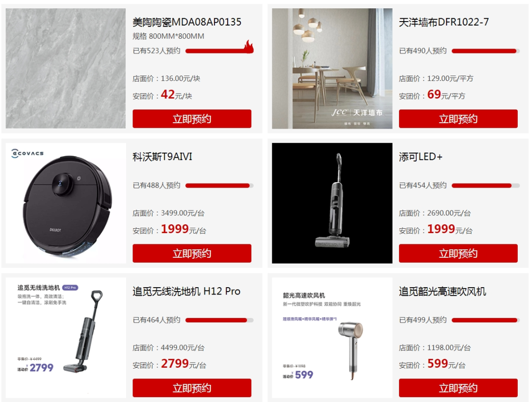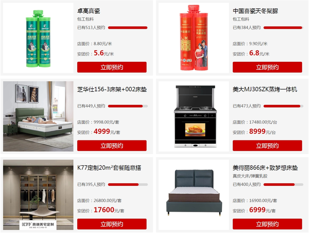 团购类别:地板、瓷砖、卫浴、木门、移门、衣柜、吊顶、橱柜、淋浴房、沙发、床、床垫、餐桌、书桌、电视柜、厨卫电器、热水器、空调、冰箱、洗衣机、窗帘、壁纸、开关、灯具、晾衣架、暖通、油漆、装修公司等