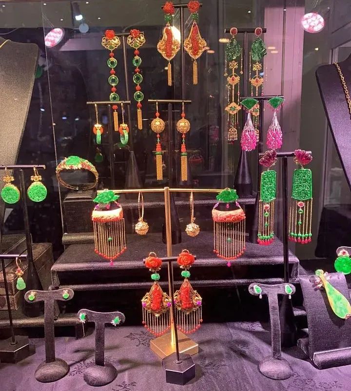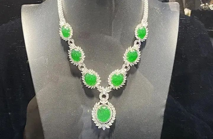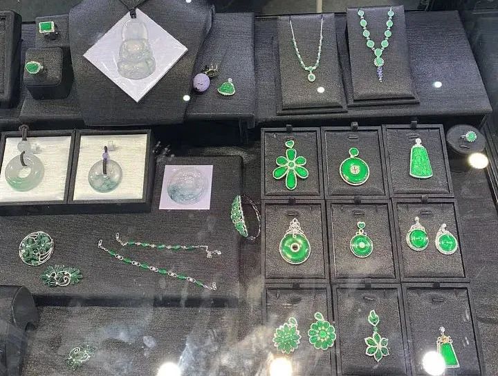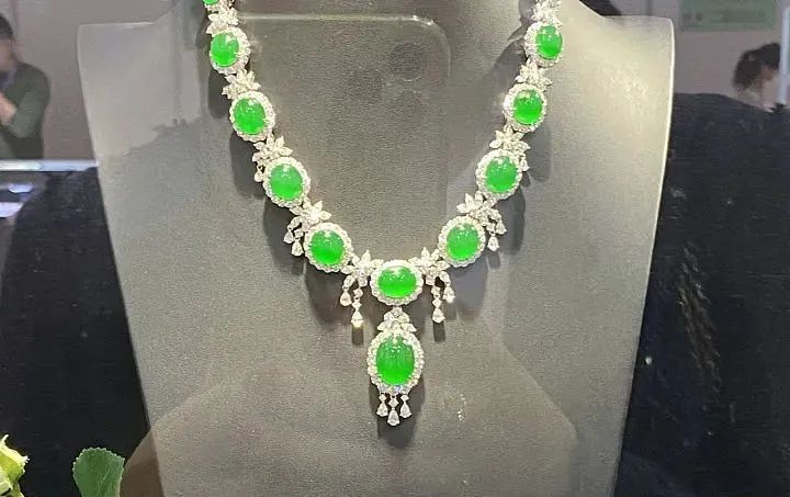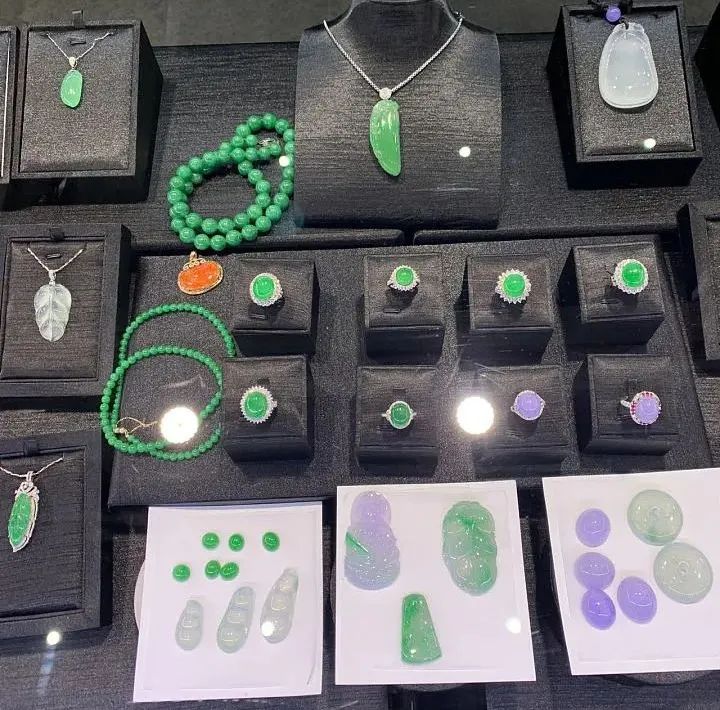 从款式种类来说,出现在珠宝首饰展会上的翡翠,大都以手镯、项链、珠链、挂件等饰品居多,而摆件文玩类较少。如果是设计类的镶嵌翡翠,款式往往更是别出心裁,独一无二。