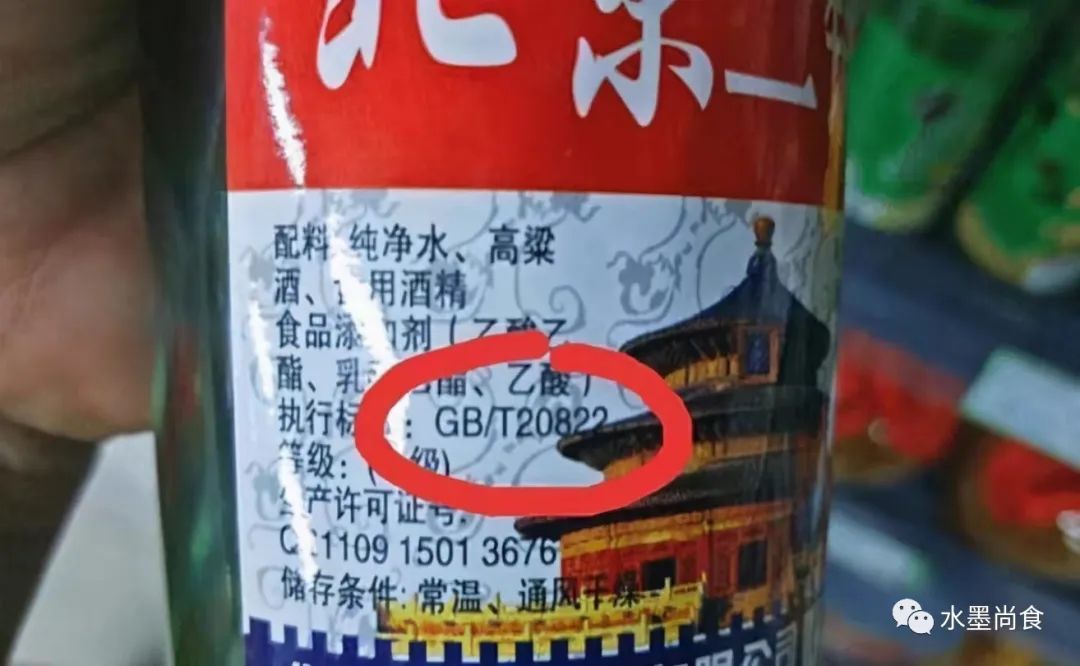 在买白酒的时候,我们可以通过GB/T 20821(酒精酒)或GB/T 20822(粮食酒)这两串执行标准号来判断酒精勾兑酒。