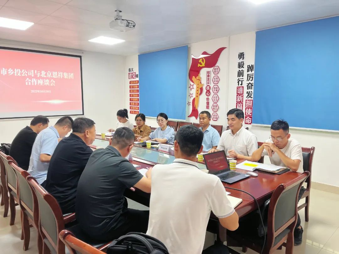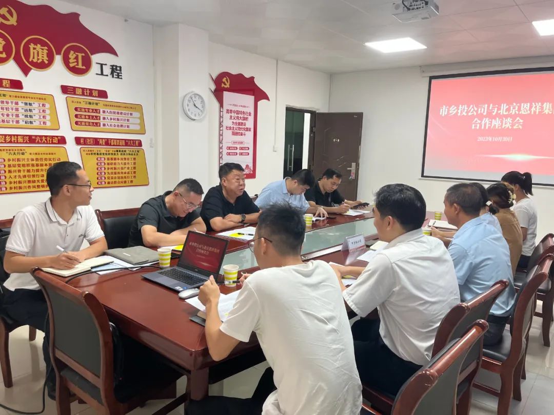 2023年10月30号,北京恩祥投资管理有限公司总裁李福顺及公司高管一行人至东方市乡投公司进行合作座谈,双方就东方南繁水产种业产业园合作的相关事宜进行深入洽谈。