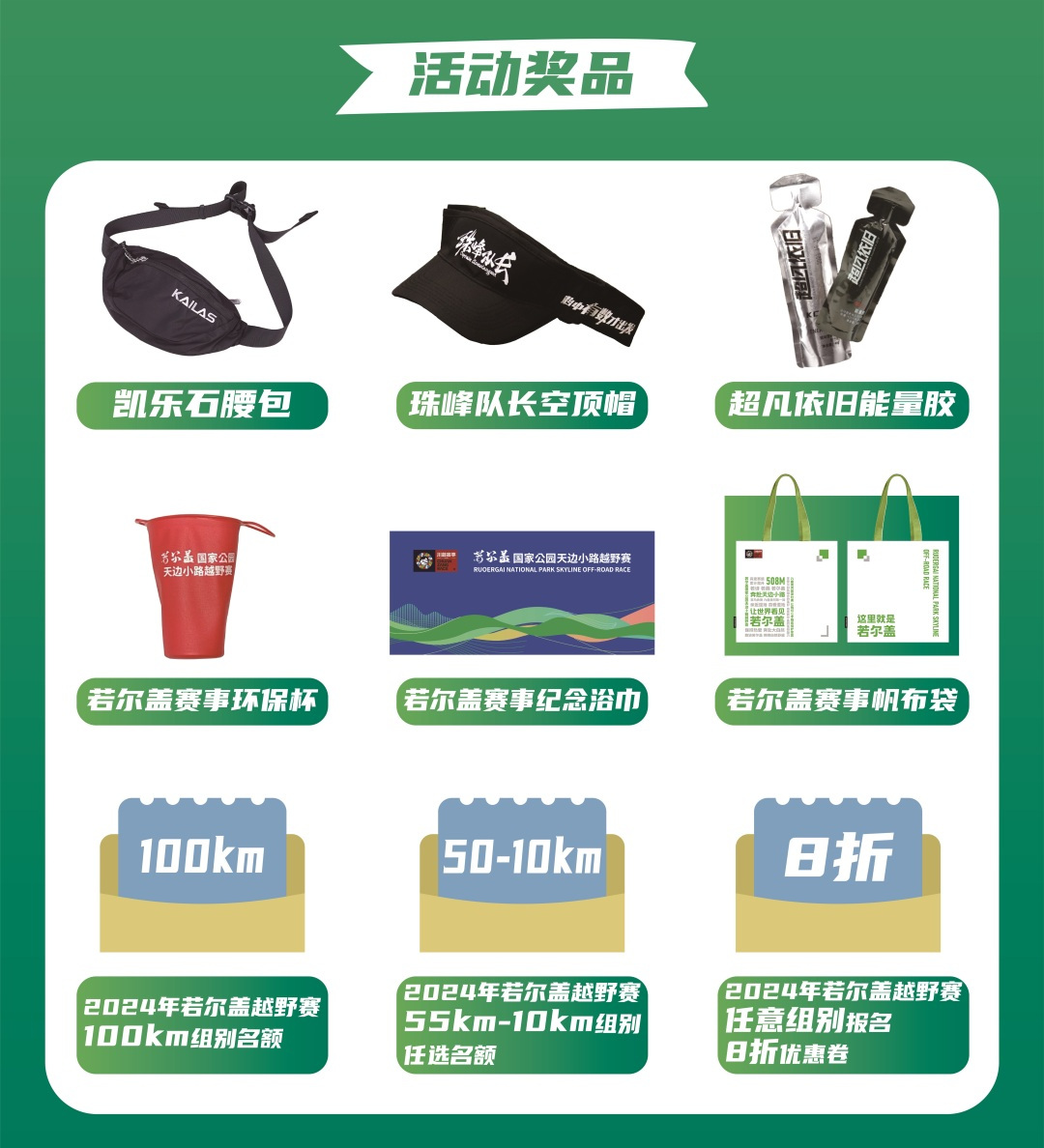 各位跑者有机会通过参与抽奖活动,赢得2024若尔盖国家公园天边小路越野赛55km-10km组别免费名额以及2024若尔盖国家公园越野赛天边小路百公里的免费报名名额。
