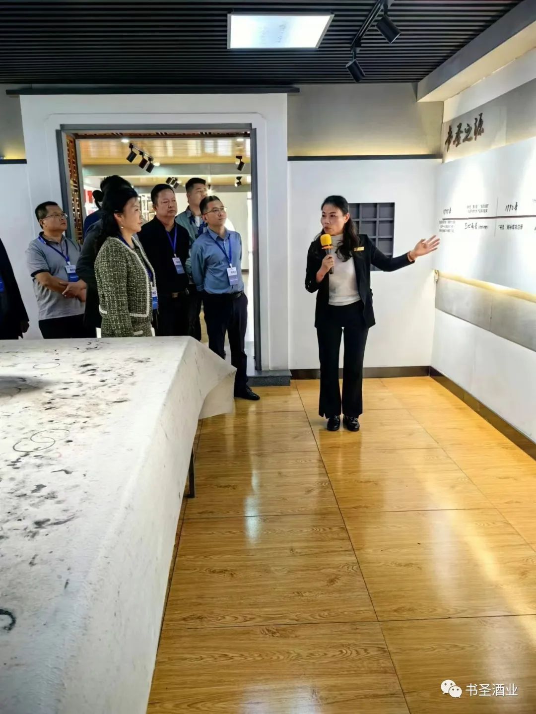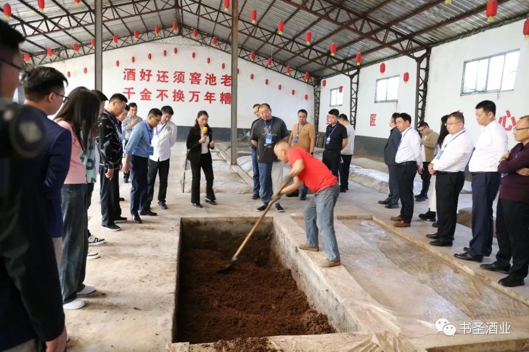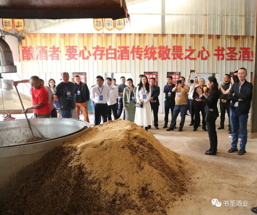 活动期间,与会嘉宾在书圣酒业副总黄爱卿的引领下,参观了书圣酒业的品牌文化展厅,了解书圣酒业的发展历史和文化渊源。他们深入书圣酒坊的每一个环节,从选粮、拌粮、蒸粮、加曲、蒸酒到灌装、存储,亲身感受了一杯美酒酿造、储存的全过程。