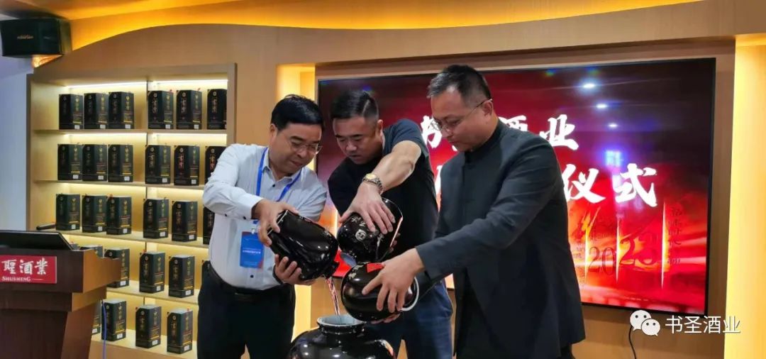临沂市新联会常务副会长徐洪阔、孙运杰,书圣酒业董事长张峰携手倾美酒入坛,洒美好祝愿,开启书圣酒业封坛月!