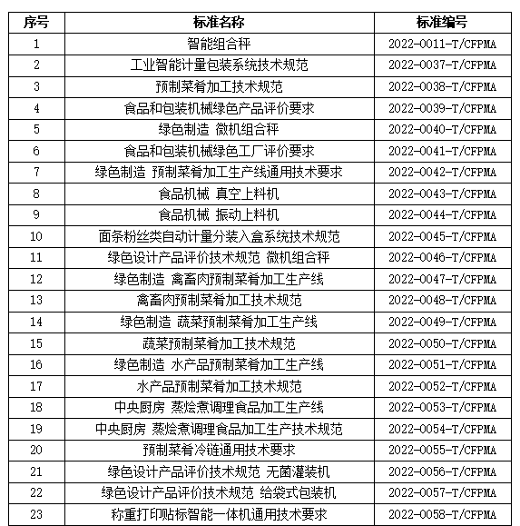 为进一步推进标准化建设,引领行业发展,中国食品和包装机械工业协会标准化技术委员会立项《智能组合秤》等23项团体标准,目前标准起草单位正在征集中。