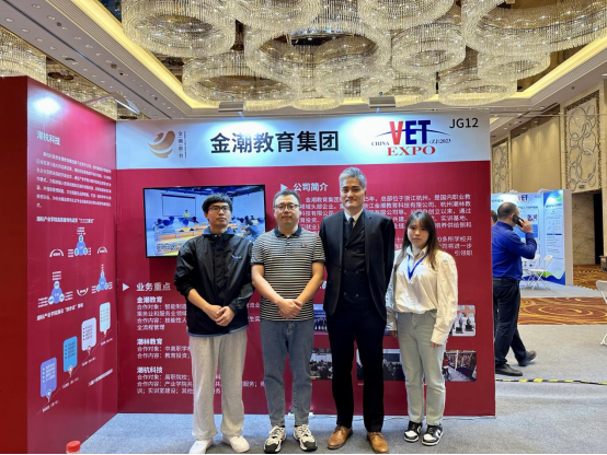 在展位上,金潮教育集团的展位成为了整个展览中最受欢迎的展位之一。来客们纷纷驻足观看,详细了解金潮教育集团的发展历程、业务板块、技术创新等方面的情况。不少参观者对金潮教育集团取得的成绩表示赞赏,并对集团未来的发展抱有很高的期待。湖州人社局钱振宇副局长也来到金潮教育集团展位前巡视并指导工作,并对金潮集团取得的成就表示肯定。钱振宇副局长表示,金潮教育集团在人力资源服务领域深耕多年,其创新性的教育模式和先进的技术手段为行业树立了新的标杆。