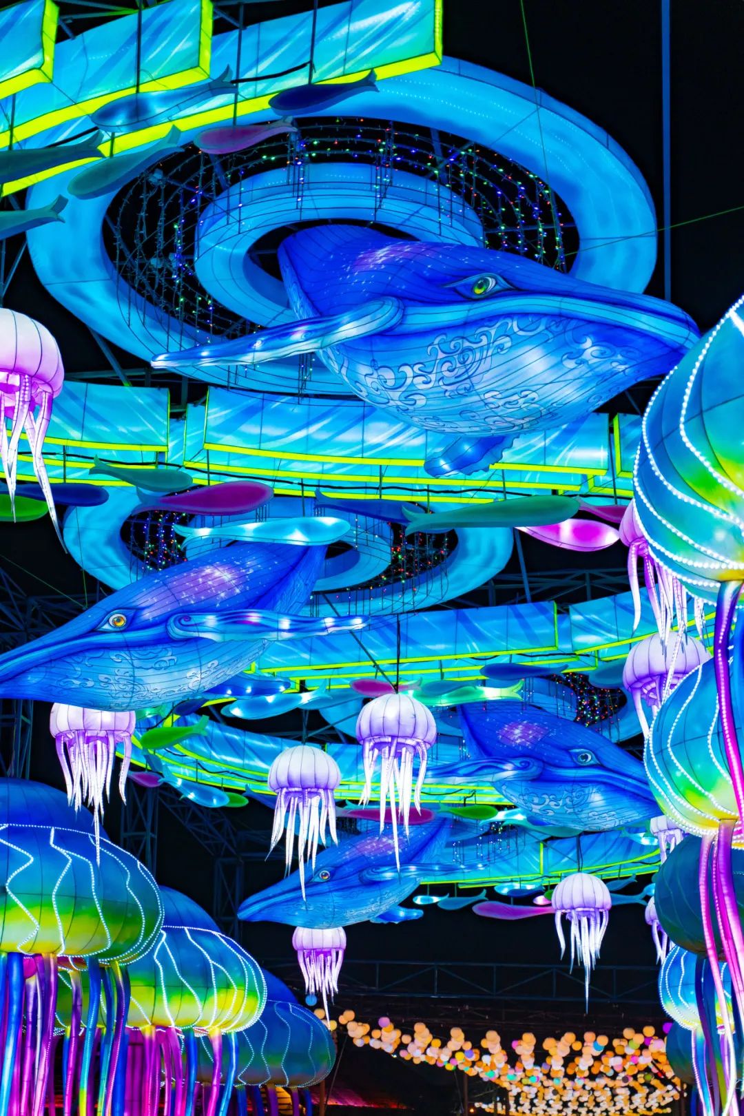 夜晚来星光大道,观赏炫彩主题彩灯,缤纷梦幻的灯组令人目不暇接。走近裸眼3D大屏,看鲸鱼“冲出屏幕”、看哈舅家族玩转西海岸......来一场科技感爆棚的沉浸式体验。