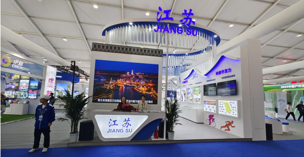 其中产业展览板块总面积2.5万平方米,分设“户外运动产业精品”“户外运动生活体验”和“户外运动发展成效”3个展区,邀请户外运动产业各相关领域知名企业代表和机构50余家参展。在6000平米的“户外运动产业精品品牌展区”内,江苏省特展策划展示了产业聚优势、体旅齐发力、消费赋新能三大版块,和泰州市姜堰区文体广电和旅游局、泰州市润元户外股份有限公司、苏州立航体育文化有限公司、江苏纽拓体育装备有限公司、扬州铜山体育小镇、红山体育度假乐园等形成近300平米户外运动产业组团,向展会嘉宾与观众展示了江苏“体旅融合发展”的多彩面貌。