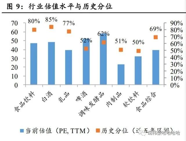 资本市场层面,估值已消化至中枢。食品饮料年初至今累计跌幅 13.58%,年内排名在各 板块间靠后,除需求和成本端压力之外,年初在流动性宽松推动下估值达到历史高位, 年内估值大幅回落。经历估值消化后,食品饮料板块估值已消化至近 5 年估值中枢,其 中白酒已消化至中枢偏下,啤酒、软饮料、肉制品估值已消化至低位。