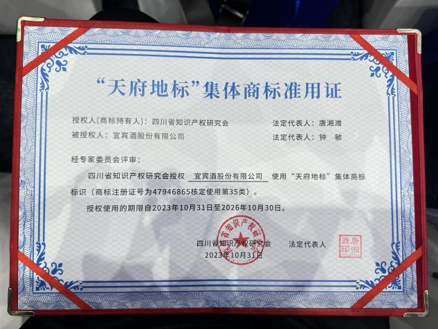 活动现场,全省首批10家企业获准使用“天府地标”集体商标,宜宾酒成功入选。