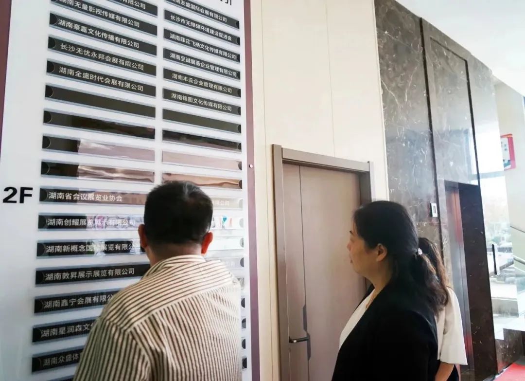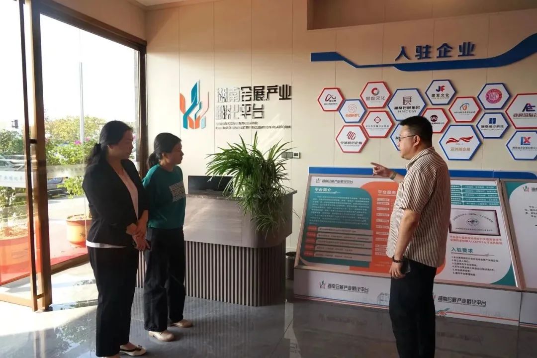 10月31日下午,长沙县政协提案委副主任袁书钦,县政协委员吴琼、余安、周永亮、涂征,县委统战部张菲菲一行,在长沙自贸会展管委会制度创新局局长王振新的陪同下,莅临湖南会展产业孵化平台调研指导。