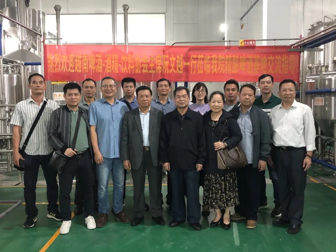 10月29日,越南“啤酒-酒精-饮料”协会主席阮文越携企业代表团一行12人到广西轻工院开展精酿啤酒生产技术考察交流。广西轻工院纪委书记唐尧及部分科研骨干参加了座谈交流。