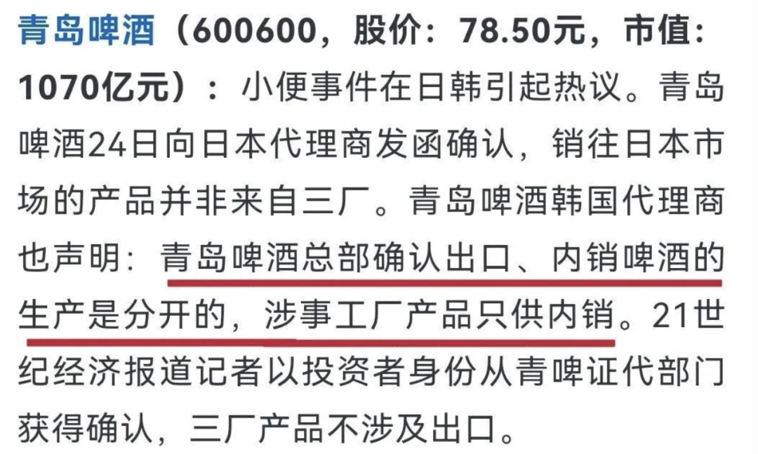这样会让“青岛啤酒到底有没有问题的问题,成为真正问题。”