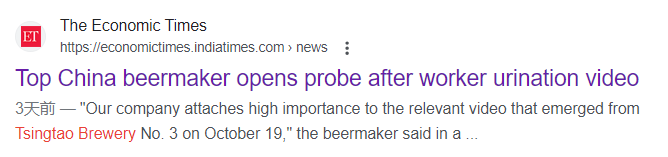 谷歌搜索Tsingtao Brewery(青岛啤酒),关于青岛啤酒三厂员工在原料仓进行不雅举动的相关图文、视频高达300万条。