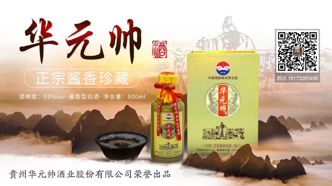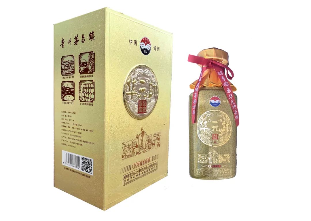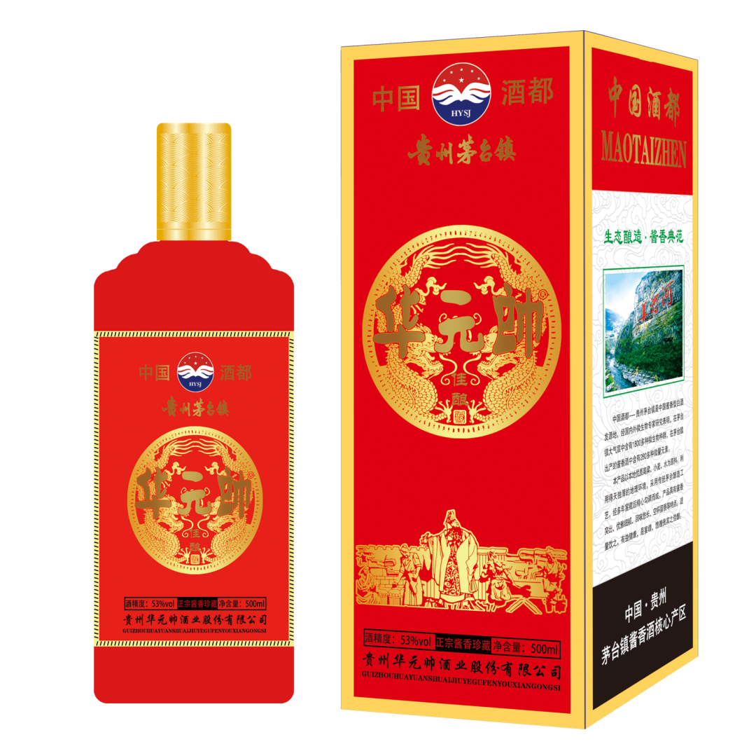 贵州华元帅酒业有限公司成立于2015年,公司位于茅台镇核心产区,注册资金壹千万元,主要经营销售华元帅系列包装酒及散装纯正酱香型白酒,公司现有生产经营(厂房)8000平方米,自动灌装生产线二条,年能生产华元帅礼品盒装酒2万余箱左右,酿制原酒300吨左右,原酒全部采用茅台千年古法酿制。
