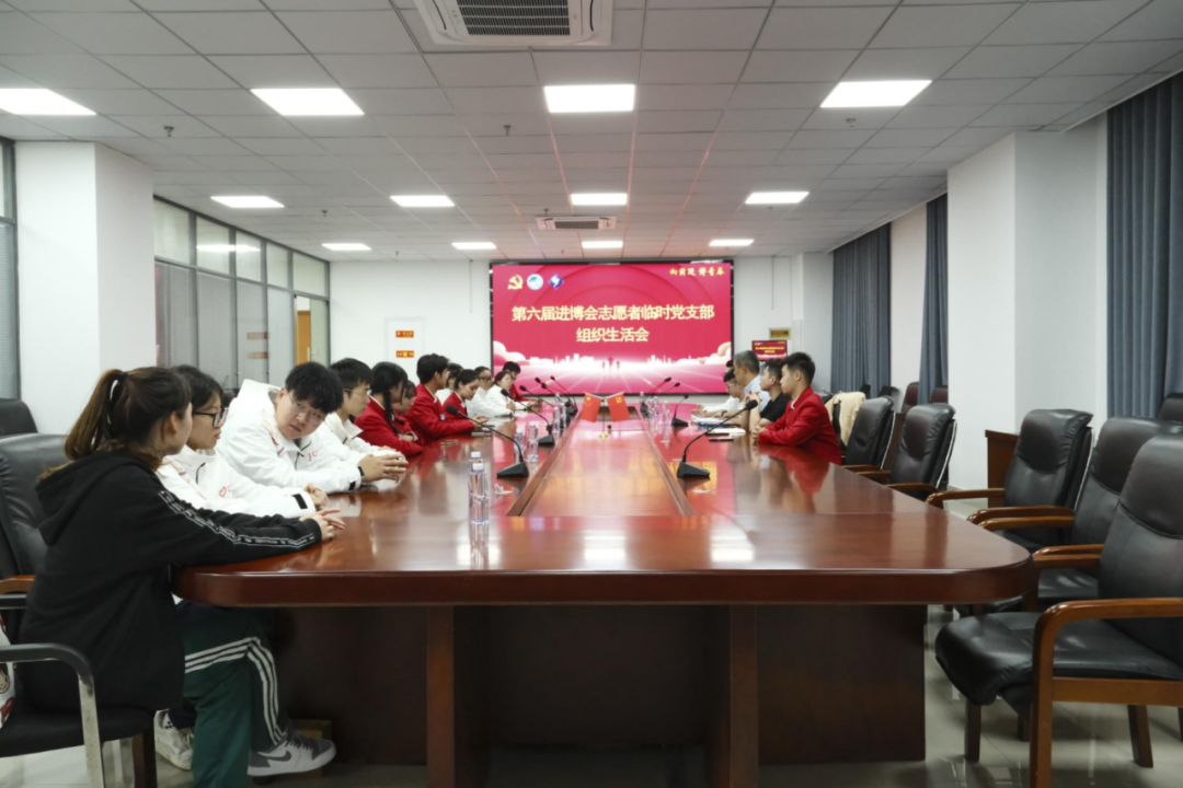 在成立大会结束之后,召开了第六届进博会志愿者临时党支部组织生活会,希望各位中侨党员“小叶子”可以把组织建设嵌入志愿服务一线,不断提高政治站位,以高质量的志愿服务彰显青年党员的先进性和奉献性,成为一名平常时候看得出来、关键时刻站得出来、危难关头豁得出来的青年党员,让党旗在志愿服务一线高高飘扬,让青年成长在进博服务中行稳致远。
