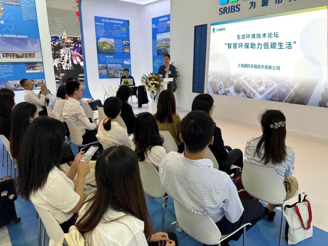 江燕为集团“生态环境创新技术”企业展台活动致辞。集团下属上海建科环境技术有限公司、湖北君邦环境技术有限责任公司均为中国环保咨询领域的头部企业。活动中,建科环境公司的科技工作者分享河湖水体、产业园区、人居环境等领域的环境智慧管理前沿技术。