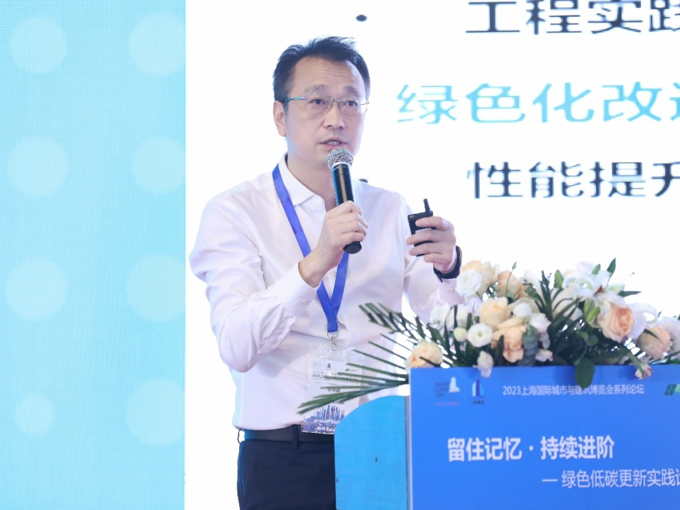 李向民在“留住记忆,持续进阶——绿色低碳更新实践”论坛作《上海市<既有建筑绿色低碳改造评价标准>编制思路设想》专题报告。上海建科集团积极参与城市绿色更新领域的科技创新和服务实践,为上海大学上海美院工业遗址改造更新项目提供工程咨询、绿色建筑咨询等服务。