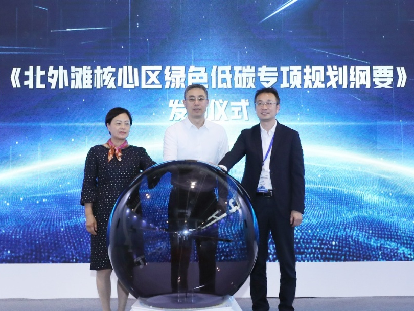 城博会期间举行上海建科院主编《北外滩核心区绿色低碳专项规划纲要》的发布仪式,虹口区委常委、副区长关也彤与李向民共同参加仪式。