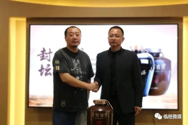 临沂市新联会常务副会长徐洪阔、孙运杰,书圣酒业董事长张峰携手倾美酒入坛,洒美好祝愿,开启书圣酒业封坛月!