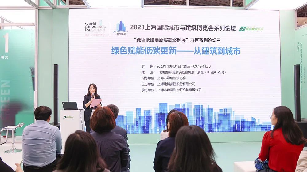 10月31日,2023上海国际城市与建筑博览会系列论坛“绿色赋能,低碳更新——从建筑到城市”在上海市绿色建筑协会“绿色低碳更新实践案例展”展区圆满举行。论坛由上海市绿色建筑协会指导、上海建科集团股份有限公司主办,上海市建筑科学研究院有限公司承办。